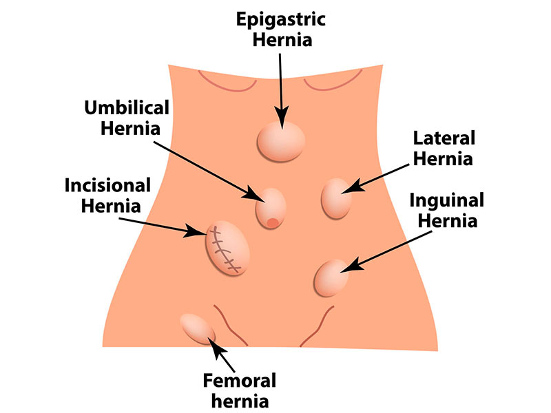 As hérnias da parede abdominal ocorrem quando estruturas internas, geralmente alças intestinais ou gordura /epíplon podem atravessar áreas de fraqueza da musculatura e das aponeuroses da parede abdominal, formando um abaulamento visível ou palpável.